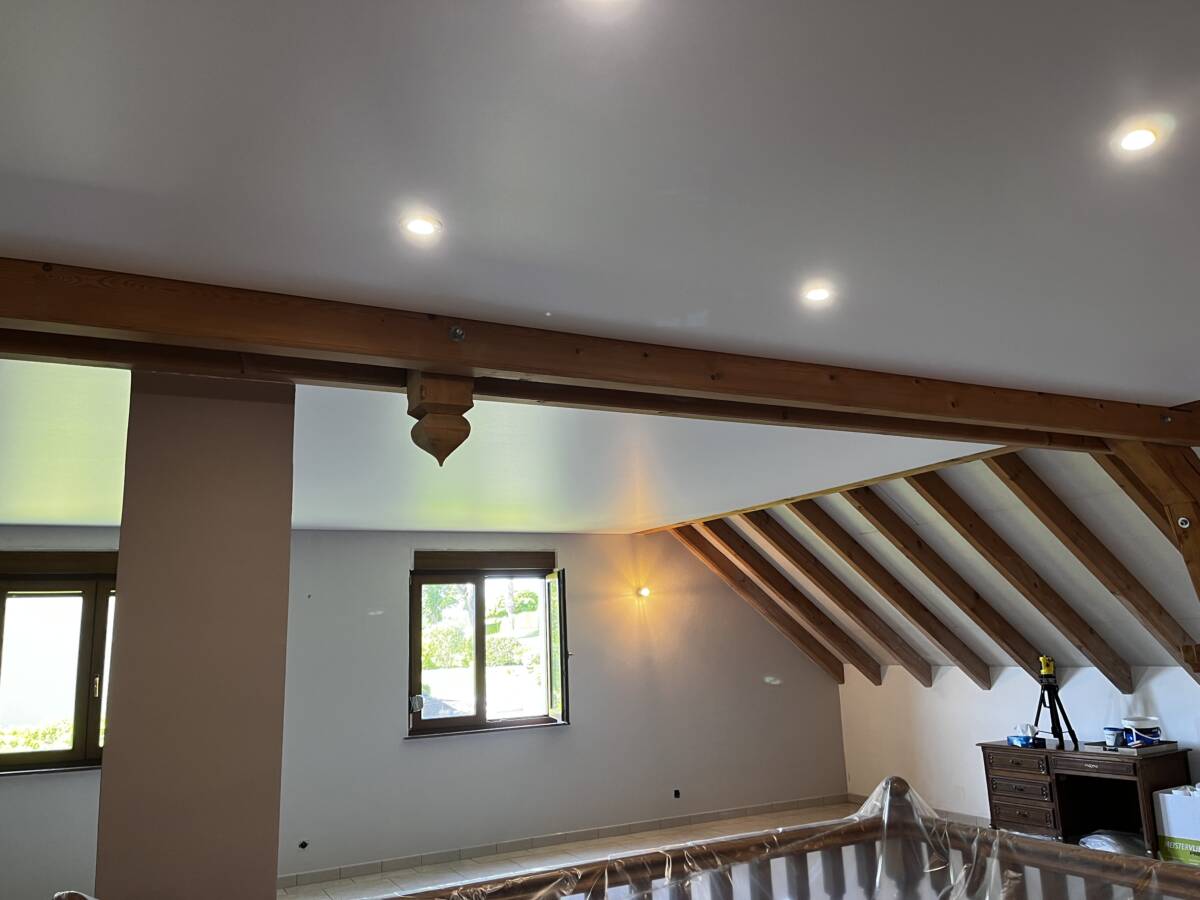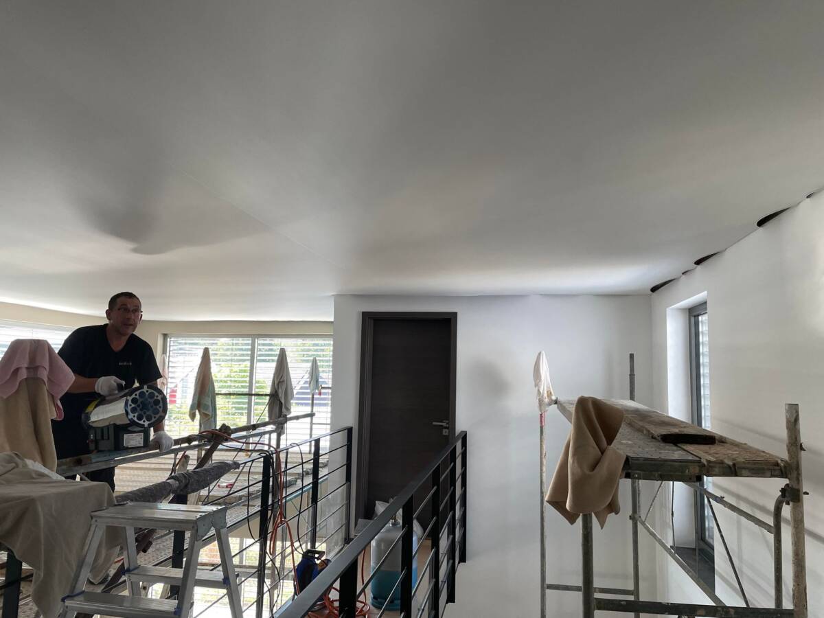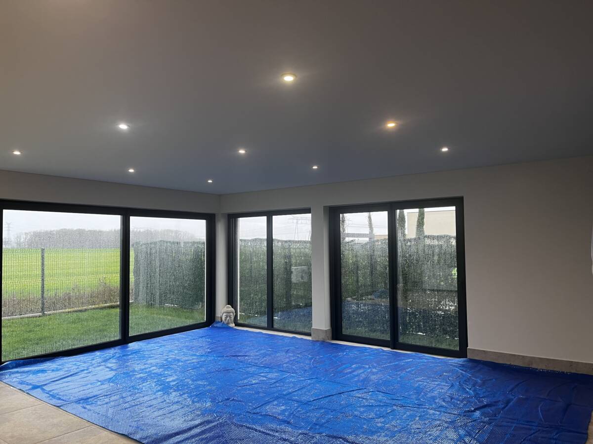 Pose d’un plafond tendu dans une extension de maison avec piscine intérieur dans la commune de Marsilly proche de Metz