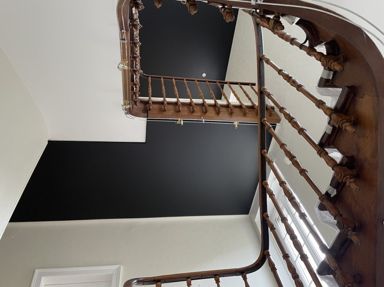 Pose de plusieurs toile blanche mat dans un salon / séjour avec spots