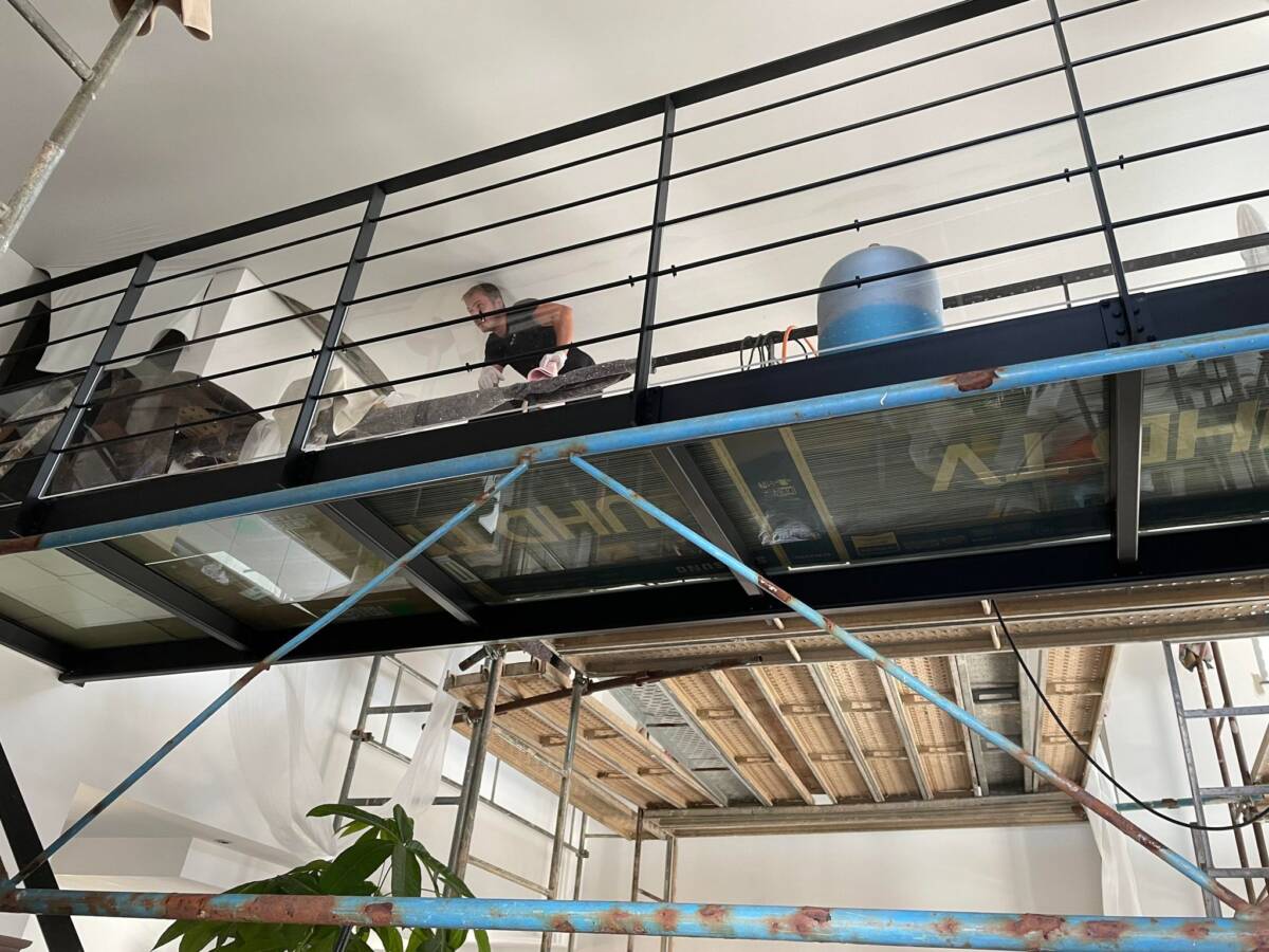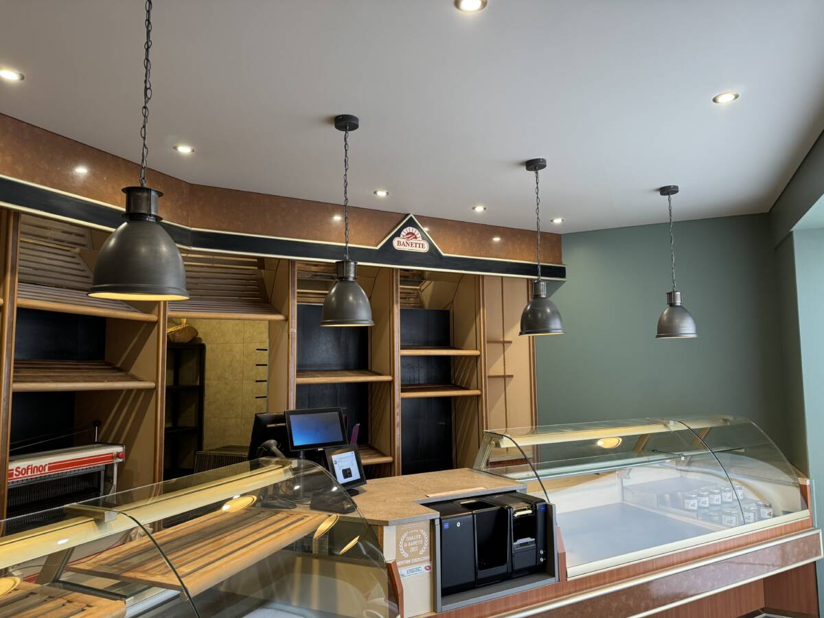 Réalisation d’un plafond tendu dans le hall d’accueil d’une boulangerie